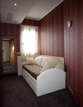 La Junior Suite Adriatica possiede infatti un balcone soleggiato e un salottino separato dalla zona notte con porta comunicante e divano che all’occorrenza è adattabile come letto aggiunto o a castello.