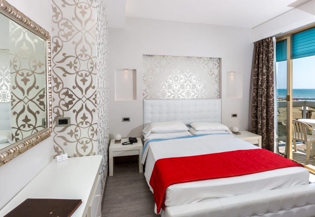 La camera singola è una camera doppia uso singola con letto matrimoniale, vista mare e balcone soleggiato.
